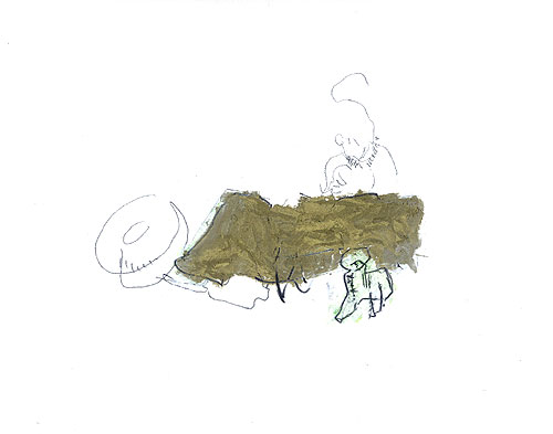 "Zwischenfall mit Folge", Ölkreide, Bleistift auf Karton, 20 x 25 cm, 26.05.2004