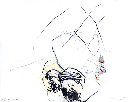 "Morbide Zeiten", Ölkreide, Bleistift auf Karton,